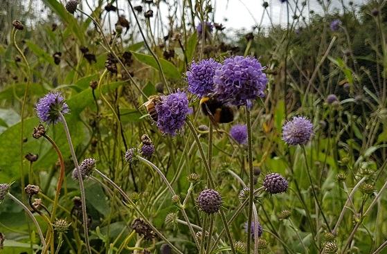 It might seem quite simple that on organic holdings no herbicides are used so there is lots of plant diversity. And it is almost as simple as that. Yes us organic growers spend time and effort keeping unwanted wild plants at bay. We don’t wake up each morning hoping to see the garden full of dandelions or docks. But by selective weeding and a keen eye for plants we have created a space where wild orchids, knapweed, clover, trefoil, bluebells and more thrive. More than this, we engage purposefully in creating edges which are diverse in their plant life, we have introduced the beautiful Devil’s -bit Scabious to be a larval plant for the Marsh Fritillary, a rare butterfly found locally. It really is possible to produce an abundance of food whilst allowing the rest of nature to thrive.